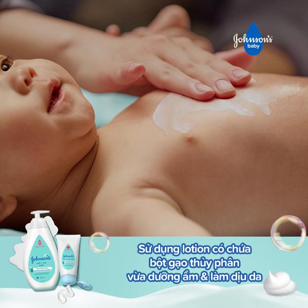 Các mẹ có thể tham khảo kem dưỡng ẩm Johnson’s Baby Sữa và Gạo, chứa chiết xuất gấp 10 lần tinh chất sữa và gạo, giúp nuôi dưỡng và bảo vệ làn da bé.