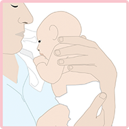 Bế bé áp vào ngực bạn, mát-xa lưng của bé bắt đầu từ cổ rồi dần xuống dưới mông bé.